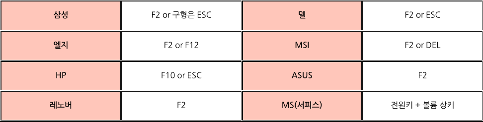 그리고 각 PC 상황에 맞게 키를 연타해서 바이오스 모드에 진입하자.
