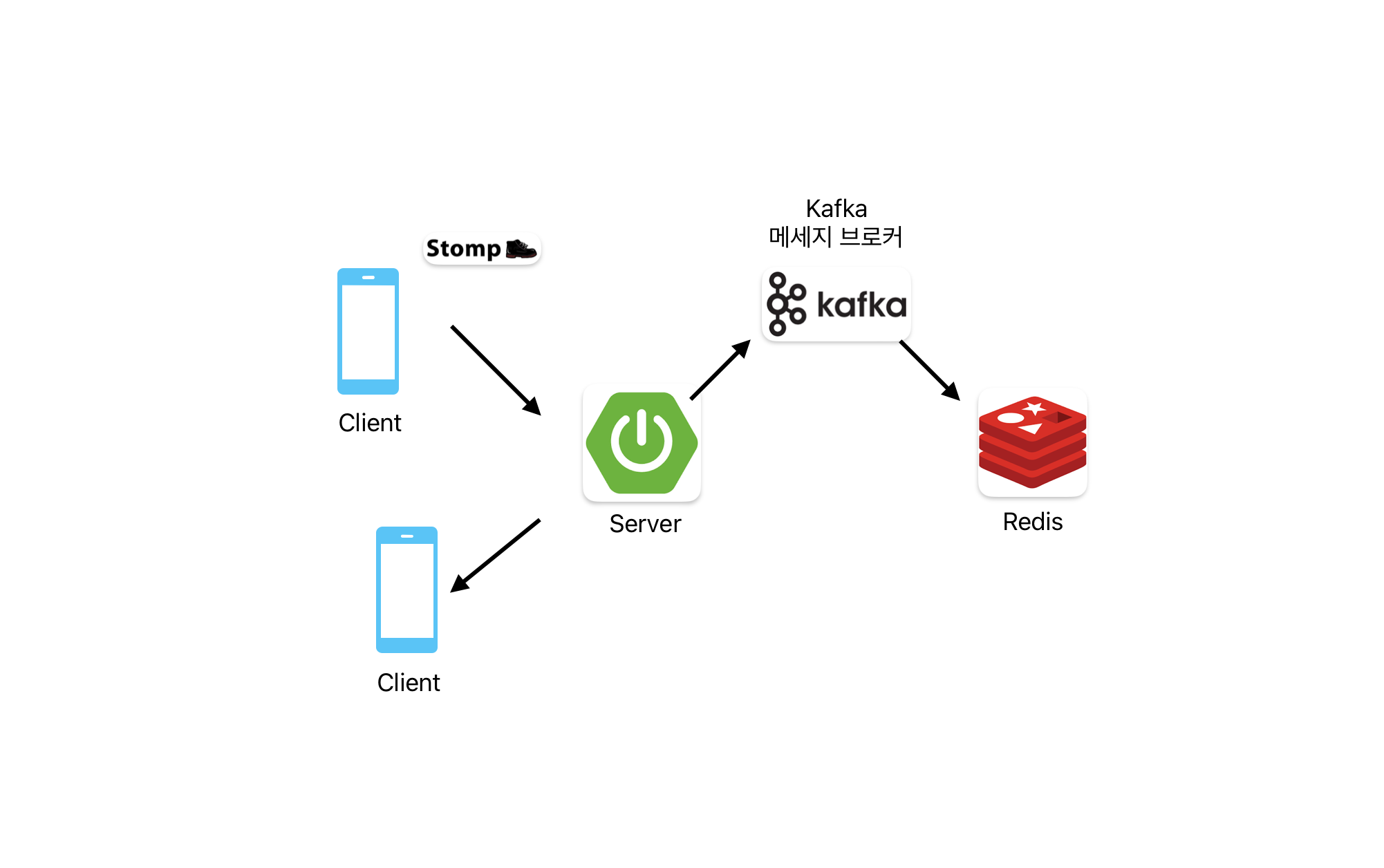 2. server는 메시지 객체를 kafka producer를 통해서 consumer로 전송한다.
