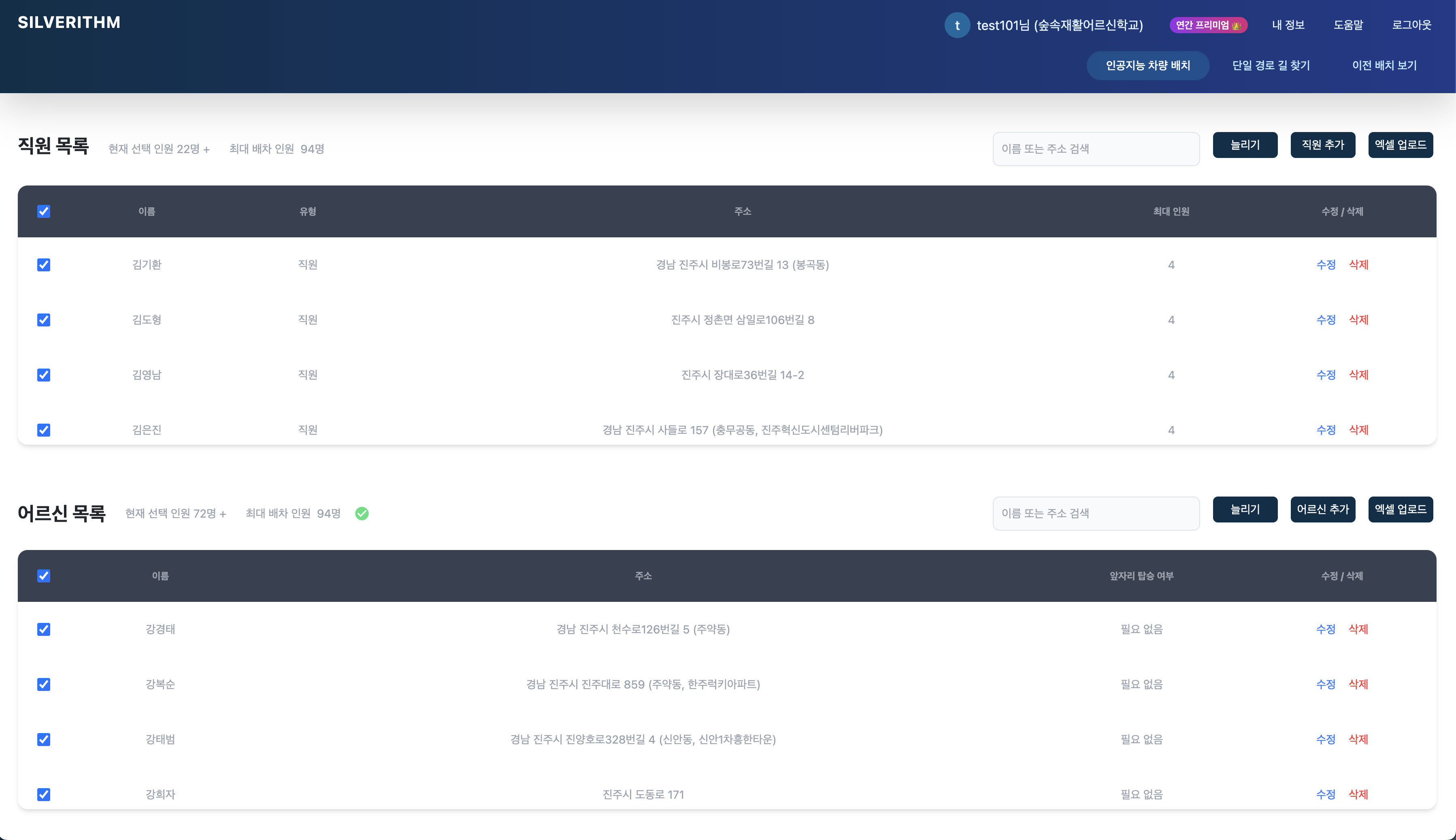 실버리즘은 요양기관 차량운행표를 자동으로 최적화해주는 웹 서비스입니다.