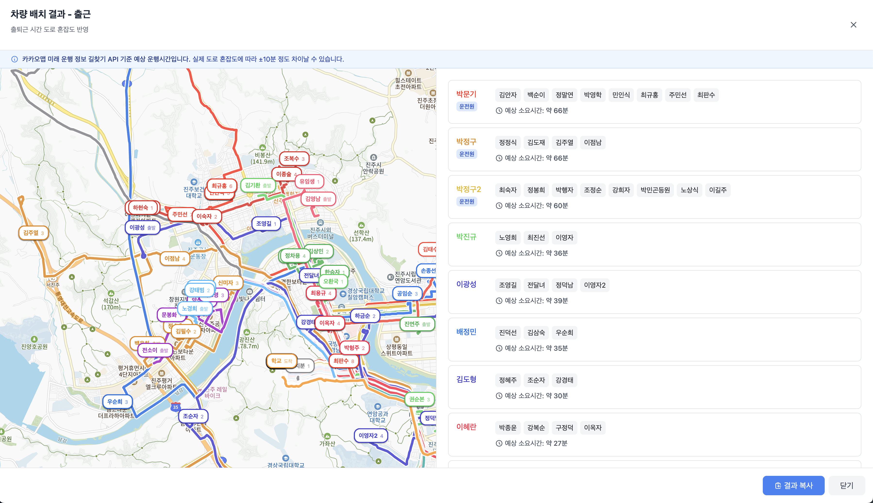 한 번 운행표를 만들 때만도 3,000개 이상의 경로 요청이 필요합니다.