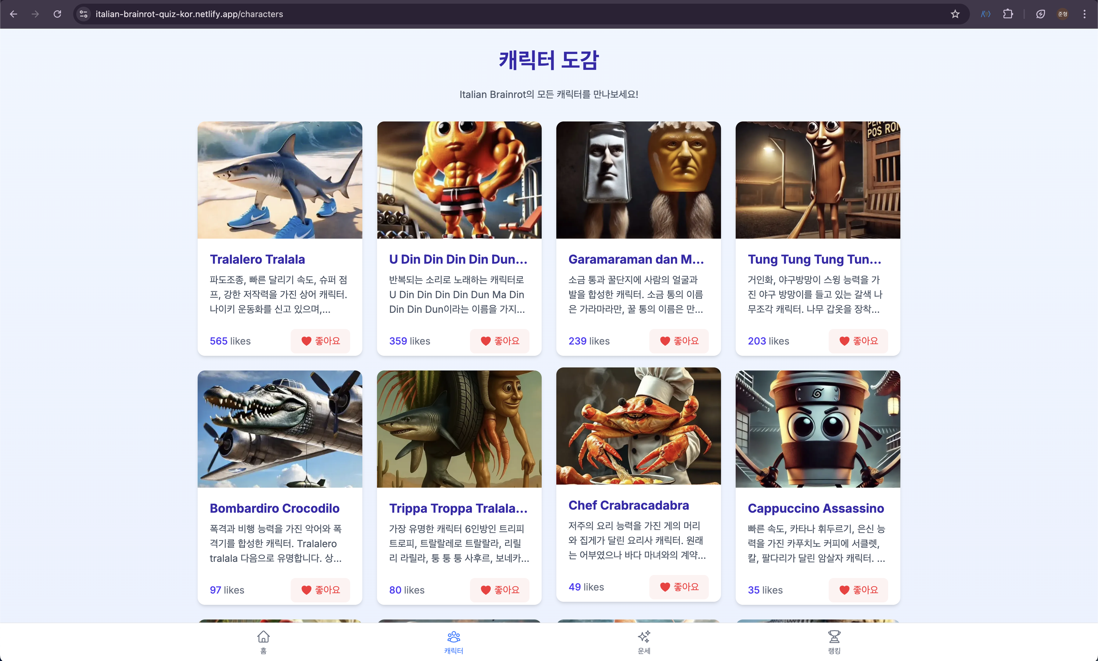 단시간에 많은 사람들에게 즐거움을 주고 빠르게 확산될 수 있는 프로젝트를 목표로, 최근 유행하는 'Italialin brainrot' 밈을 활용한 인터랙티브 웹사이트를 기획했습니다. 놀랍게도 Cursor AI와 Next.js, firebase를 활용하여 단 6시간 만에 핵심 기능을 포함한 웹사이트를 완성하는 경험을 했습니다.