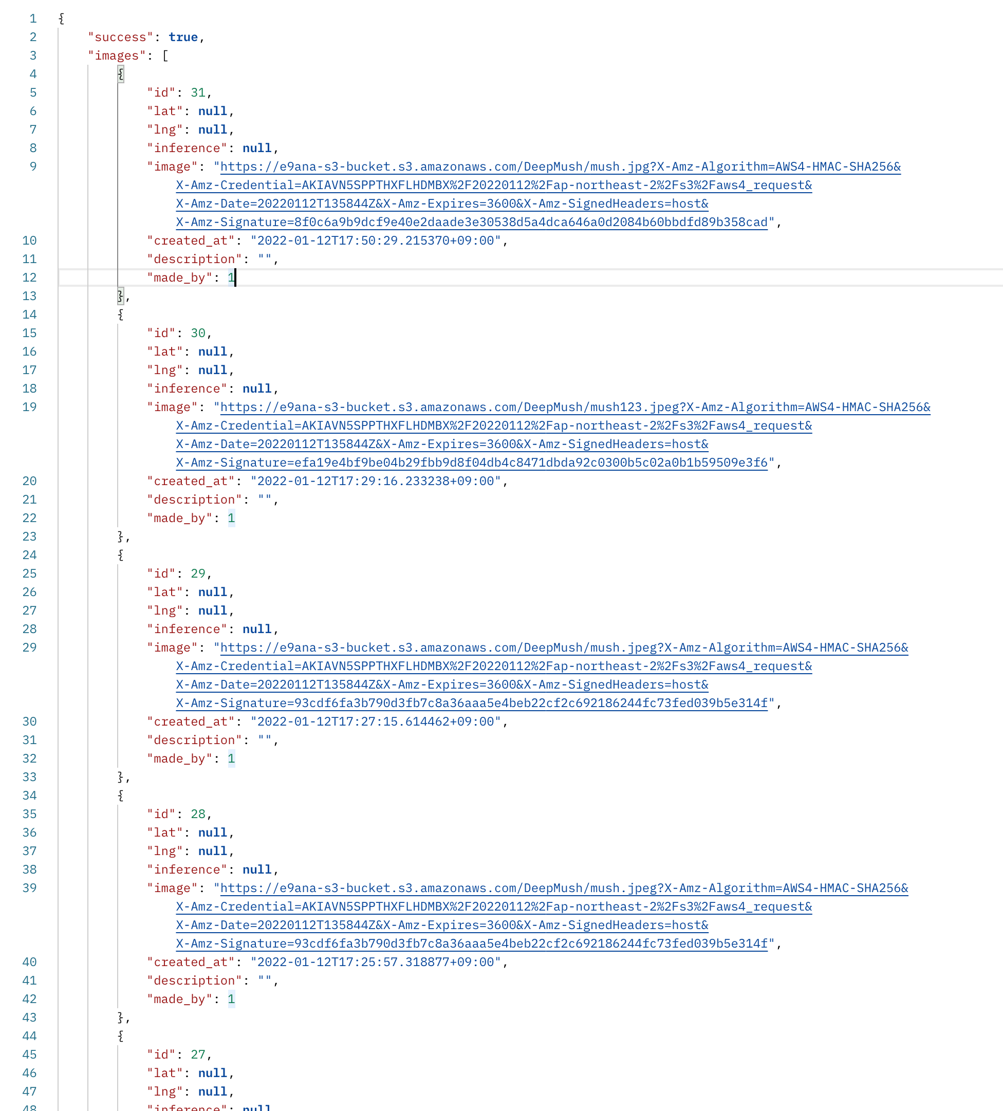 그리고 post 작업을 완료하고 image get api를 사용해서 이미지리스트를 구현하는데 성공했다. 처음에는 json을 불러올때 response.json()으로 불러와야하는데 response.data로 불러와서 계속 json 형태를 읽지 못해서 undefined로 떴다. 나중에 type명령어로 response data의 타입을 확인하니 string으로 되어있었다. 그래서 바로 response.json으로 바꾸고 json형태로 불러온뒤에