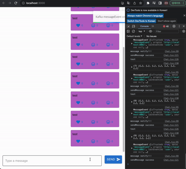 5. event가 발생하게 되면 SSE를 통해서 리액트 클라이언트에 이벤트를 실시간으로 알려주는 기능을 만들었다.