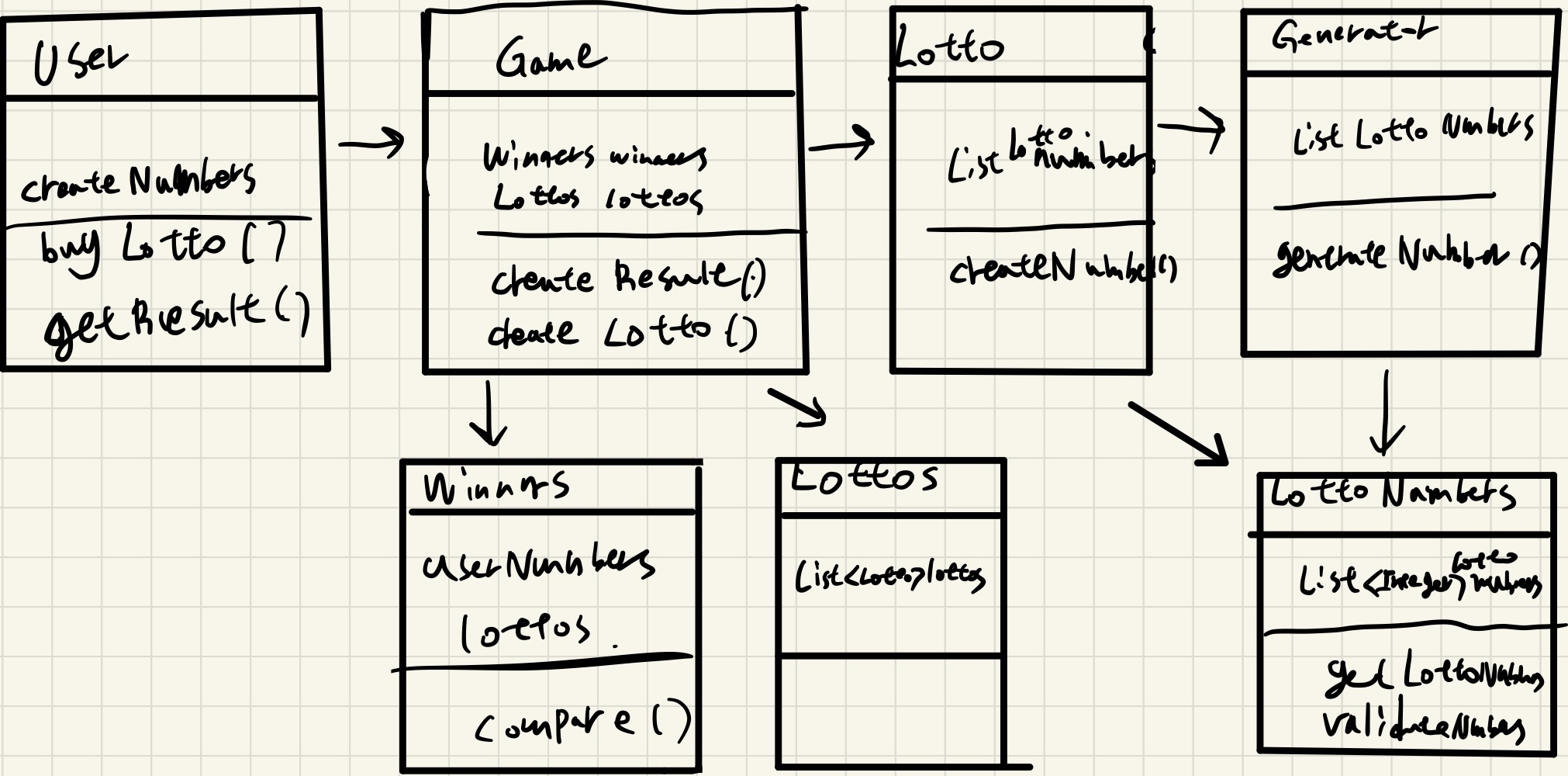 3주 차에 클래스를 분리하는 연습이 목표로 추가가 되면서 조금 더 클래스의 분리와 객체 지향적 설계를 하기 위해서 많은 노력을 기울였습니다. 2주 차때는 설계의 미흡함으로 인해서 기능을 완성한 후에 객체 분리 리팩토링에 많은 시간을 투자하였습니다. 이번에는 설계를 탄탄하게 하여 개발을 진행하기 위해서 프리코스 기간 중에 읽기 시작한 “오브젝트”라는 객체지향 책을 공부하며 배운 내용을 설계에 담아보고자 노력했습니다. 특히 책 내용 중 초반에 나오는 책임 주도 설계 방법과 GRASP패턴이 도움이 되었습니다. 이전에는 그저 막연하게 설계를 진행했다면 체계적인 방법을 통해서 로또 게임의 시스템 책임을 파악하고 그 책임을 더 작은 책임으로 분할하고 분할된 책임을 수행할 수 있는 적절한 객체 또는 역할을 찾아서 책임을 할당하는 연습을 하였고 GRASP 패턴의 내용을 설계에 녹이려고 노력하였습니다. 아무래도 과제를 진행하면서 틈틈이 서적을 읽고 코드에 반영하려고 하다 보니 처음에 설계하였던 내용이 중간에 많이 바뀌긴 하였지만 점점 제 코드가 데이터 중심 설계에서 올바른 책임 주도 설계로 바뀌어가는 과정을 경험을 하게 되었고 오히려 나쁜 설계를 직접 경험하고 좋은 설계로 변경시켜 나갔기 때문에 객체지향 설계에 대한 이해도를 더 높일 수 있었습니다. 또한 이번 3주 차에서는 서적에 나오는 영화관 예매 시스템의 예제 코드를 참고하면서 최대한 객체들 스스로 판단하고 행동할 수 있는 자율적인 객체를 만들고자 노력했고 객체들 간 응집도를 높이고 결합도를 낮추려고 노력했습니다. 워낙 책의 내용이 방대해서 모든 내용을 코드에 반영하지는 못했지만 앞으로 개발자로 살아가면서 두고두고 읽어야 할 책이라는 것을 깨닫게 되었고 4주 차에도 최대한 오브젝트 책을 읽으면서 설계에 반영하고 프리코스가 끝난 후에도 몇 번 정독을 해야겠다는 다짐을 하게 되었습니다.